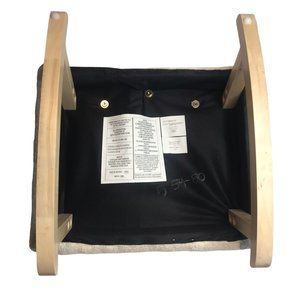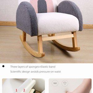This item was a floor model, so it has some signs of wear on the bottom of the rocking chair wooden rails. Please see photos for the scuff marks.