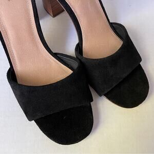 Classic open toe black suede block heels by Soludos size 9.5 that can easily be dressed up or down. New, never worn.