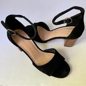 NEW Soludos Hazel Block Heels Black Suede Braided Ankle Strap 9.5