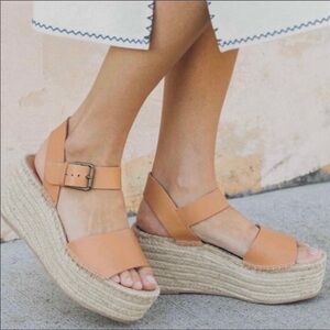 Soludos Minorca High Platform Leather Nude Size 9.5 NWT