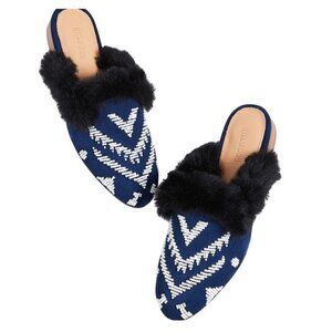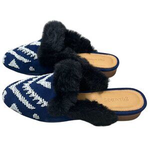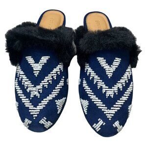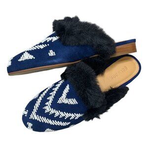 NEW Soludos Sedona Faux Fur Beaded Leather Mule Flats in Navy Blue SZ 6