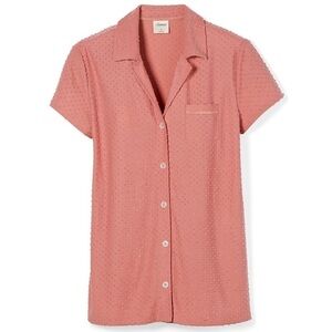 NEW Soma Textured Dot Short Sleeve Notch Collar Pajama Top Pink