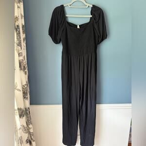 NWT! Size large soma black soft jersey smocked wide leg jumpsuit