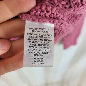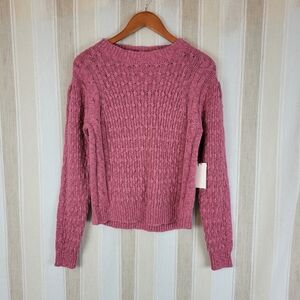 NEW Something Navy Cable Knit Sweater Pink Size Small Cotton Linen