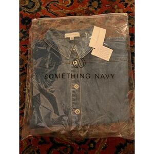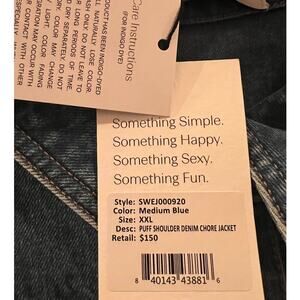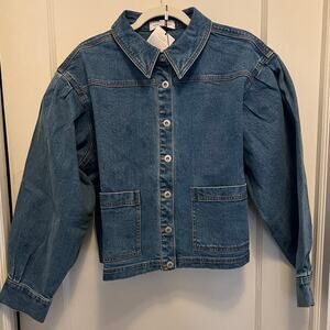 NEW Something Navy Puff Shoulder Denim Chore Jacket, Size XXL