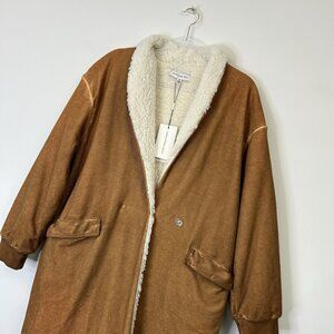 NEW Something Navy Reversible Teddy Coat Women’s Size Medium Camel Fleece