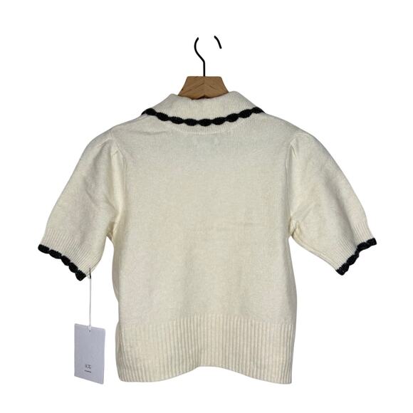 NEW Song of Style Sweater Size Medium Ivory Knit Short Sleeve Preppy Pullover