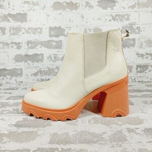 NEW Sorel Brex Cream Beige Leather Pull On Block Heel Chelsea Boots V203