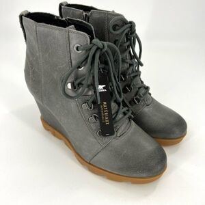 NEW Sorel Joan Uptown Grey Lace Up Wedge Booties Size 9.5