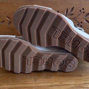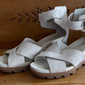 NEW Sorel Joanie II Women's Sandals Suede Ankle Strap Zipper Wedge Heel Size 9