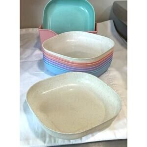 NEW Space-Saving Stackable Set of 10 Kids Plastic Rounded Plates Multi-Colored