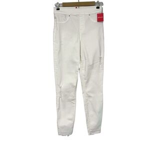 NEW Spanx White Distressed Pull On Skinny Jeans Size Medium