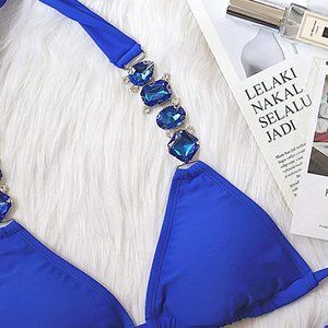 NEW Sparkling Bling Crystal Rhinestone Bikini + FREE Bling Gift We Always Include A Free Thank You Gift 🥰 This Beautiful Crystal Rhinestone Bikini Top & Bottom Is Great To Bling Up For Any Occasion.... Summer Beach & Pool Parties Or Under Your Favorite Blazer Or Black Leather Jacket Makes A Perfect Birthday Gift & Great Conversation Piece Available Colors: RED, GREEN, ROYAL, TEAL, PURPLE, BLACK Available In All Sizes See Size Chart: Last Image Outside Material: Crystal/Rhinestones 82% Polyester & 18% Spandex Pictures Don't Even Come Close To How Much They Sparkle Condition: This Item Is Brand New, Never Used Inside A Gift Box With Bubble Wrap Disclaimer: Product Color May Slightly Vary Due to Photographic Lighting Computer Monitors