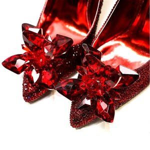 NEW Sparkling Bling Swarovski Crystal Shoes Dorothy Ruby Red Slippers Fl…