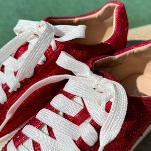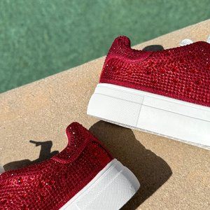 NEW🔥 Sparkling Red Rhinestone Crystal Embellished Lace Up Flat Platform Sneaker