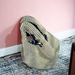 Optional silver chain shoulder strap. Can clip on or off on the sides