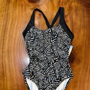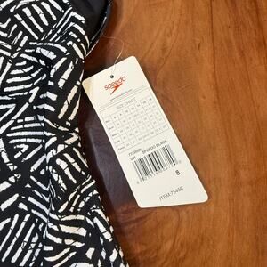 NEW Speedo Swim Women's Bathing Suit 8 One Piece Black Beach Geometric