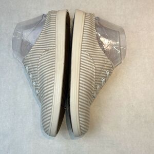 NEW Spenco White & Tan Stripe Canvas Slip On Tennis Shoes
