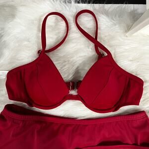 New without tags Vintage 90s Y2K 3 pc Swimsuit Padded Push Up Bikini Top with Moderate Coverage Scoop Bikini Bottoms and Skirted Swim Bottoms by Spiegel. Lined. Red Hot Chili. Women’s Size 2/4.