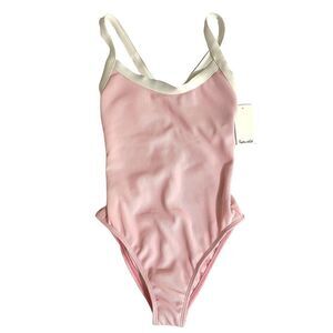 NEW Splendid Color Block retro baby pink One Piece Swimsuit Sz S