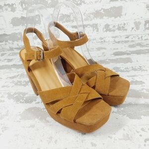 NEW Splendid Piper Tan Suede Heeled Platform Sandals H29