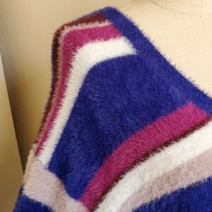 Super SOFT! Adorable and plush, fuzzy Sweater in cute multi stripe print. Cozy and perfect for the cooler months!
