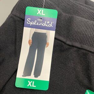 NEW Splendid Women's XL Black Wide-Leg Lounge Knit Pants Viscose Blend