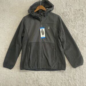 NEW Spyder Polar Jacket Women's Size L Black Hooded Fleece Full zip