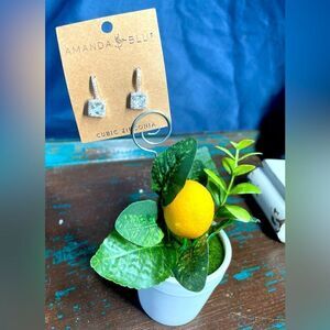 NEW! Square Halo Crystal Drop Earrings Silver Genuine Cubic Zirconia NWT