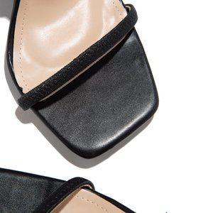 These simple strappy heels will bring sleek and trendy vibes to your look! These stunning heels have an open square toe, single sole silhouette (shaped by smooth vegan leather) that plays host to a thin elastic toe strap, criss-cross vamp strap, and slingback strap for a trendy, barely-there look, wrapped chunky heel and cushioned insole.