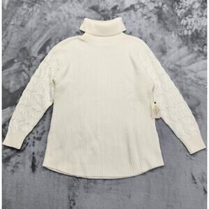 NEW St Johns Bay Sweater Womens XL Cream Ivory Turtleneck Long Sleeve Tunic Pullover Ribbed Knit Casual Cozy