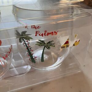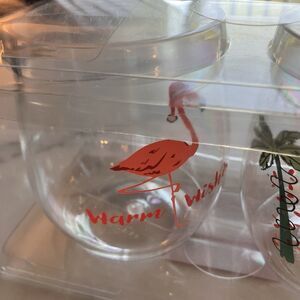 NEW St. Nickolas Square Set of 2 Wine Tumblers Christmas Palm Tree Flamingo