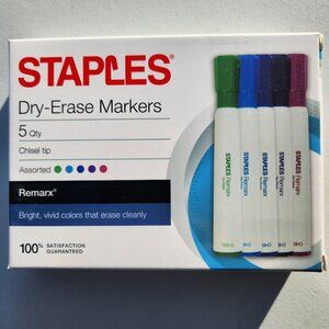 NEW Staples Dry Erase Markers 5 Quantity Chisel Tip Assorted Colors School Classroom Art Craft Supplies