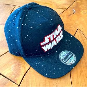 Spellout embroidered logo on front. Galaxy stars printed all over the front and back of cap. Jedi, Skywalker, Darth Vadar, Baby Yoda, Disney, Epcot, The Mandalorian , skateboard