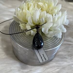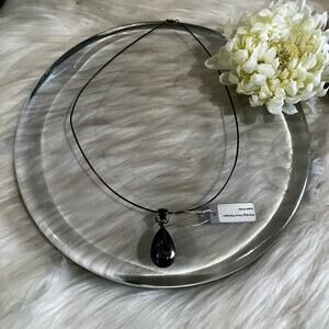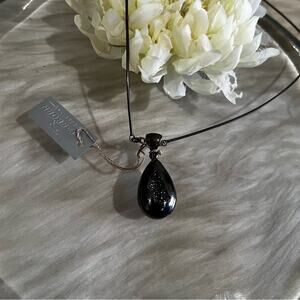 New Gorgeous Vintage 90s Black Quartz Druzy Dragon Teardrop Sterling Silver Pendant Necklace by Starborn. 1.5” Druzy Pendant on a 18” Silver Wire Chain with Lobster Clasp.