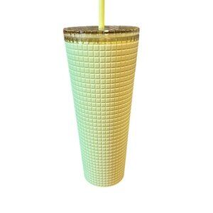 NEW Starbucks 2023 Meadow Yellow Soft Touch Grid Tumbler Cold Cup 24 oz