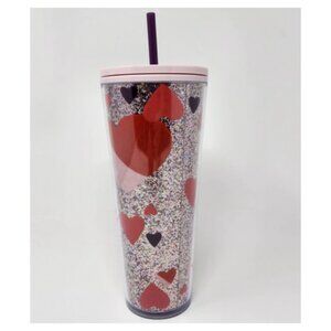 NEW Starbucks Valentine Glitter Hearts Pink Purple Acrylic Tumbler 24 oz