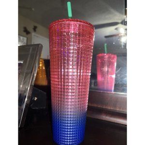 NEW Starbucks Watermelon Pink Purple Gradient Ombre Grid 24oz Venti Tumbler
