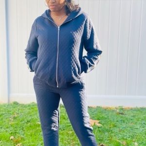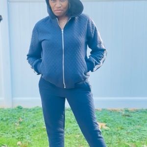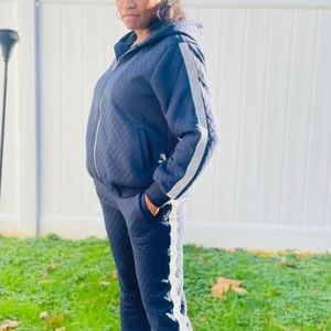 The Starry Nights 2 piece set is so comfortable and chic. It features sequins on sleeves and pants with elastic waist and drawstring. Model is wearing a medium.