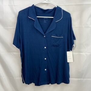 NEW Stars Above women's blue button down collared soft lounge pajama top large
