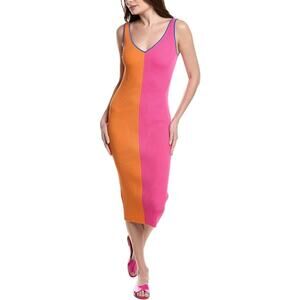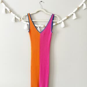 NEW Staud Dana Colorblock Rib Bodycon Midi Dress Magenta/Tangerine/Royal Size XS