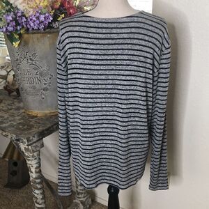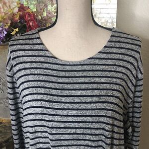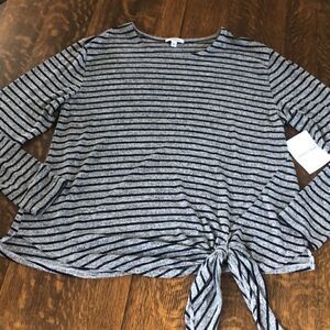 NEW Stella & Dot Soft Gray and Dark Navy Striped Tie Front Top NWT