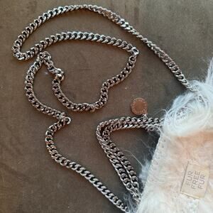 NEW Stella Mccartney Falabella Mini Fur Tote Bag Silver Chain