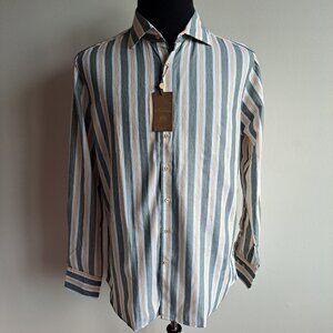 NEW Stenstroms Striped Green Orange Button Down Linen Cotton Dress Shirt Size L