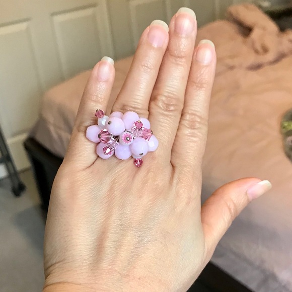 NWT Sterling Silver Sparkly Crystal Ring. Beautiful handmade ring with a fun and trendy design. Pink and White czech crystals. Size 6 - LDJewels