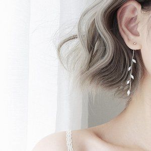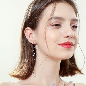 NEW Sterling Silver Diamond Leaf Drop Earrings