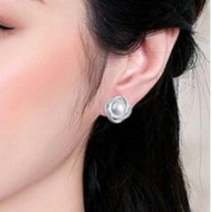 NEW Sterling Silver Diamond Pearl Stud Earrings