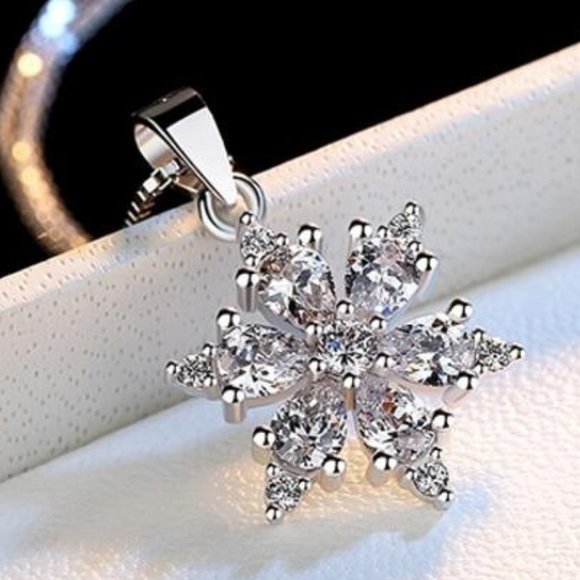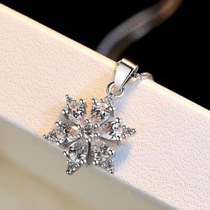*NEW Sterling Silver Diamond Snowflake Necklace
