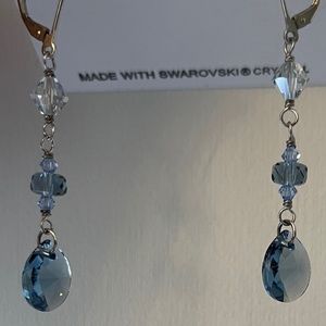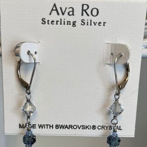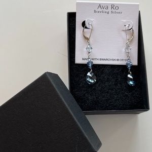Brand New elegant Ava Ro Sterling Silver Earrings made with genuine Swarovski Crystals in Gift Box. Sparkling light blue Swarovski Crystals reminiscent of blue topaz, December's birthstone. Perfect for that December birthday!