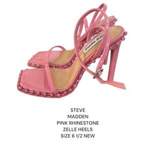 NEW Steve Madden Baby Pink Rhinestone Crystal Strappy Heels Sandals 6 1/2